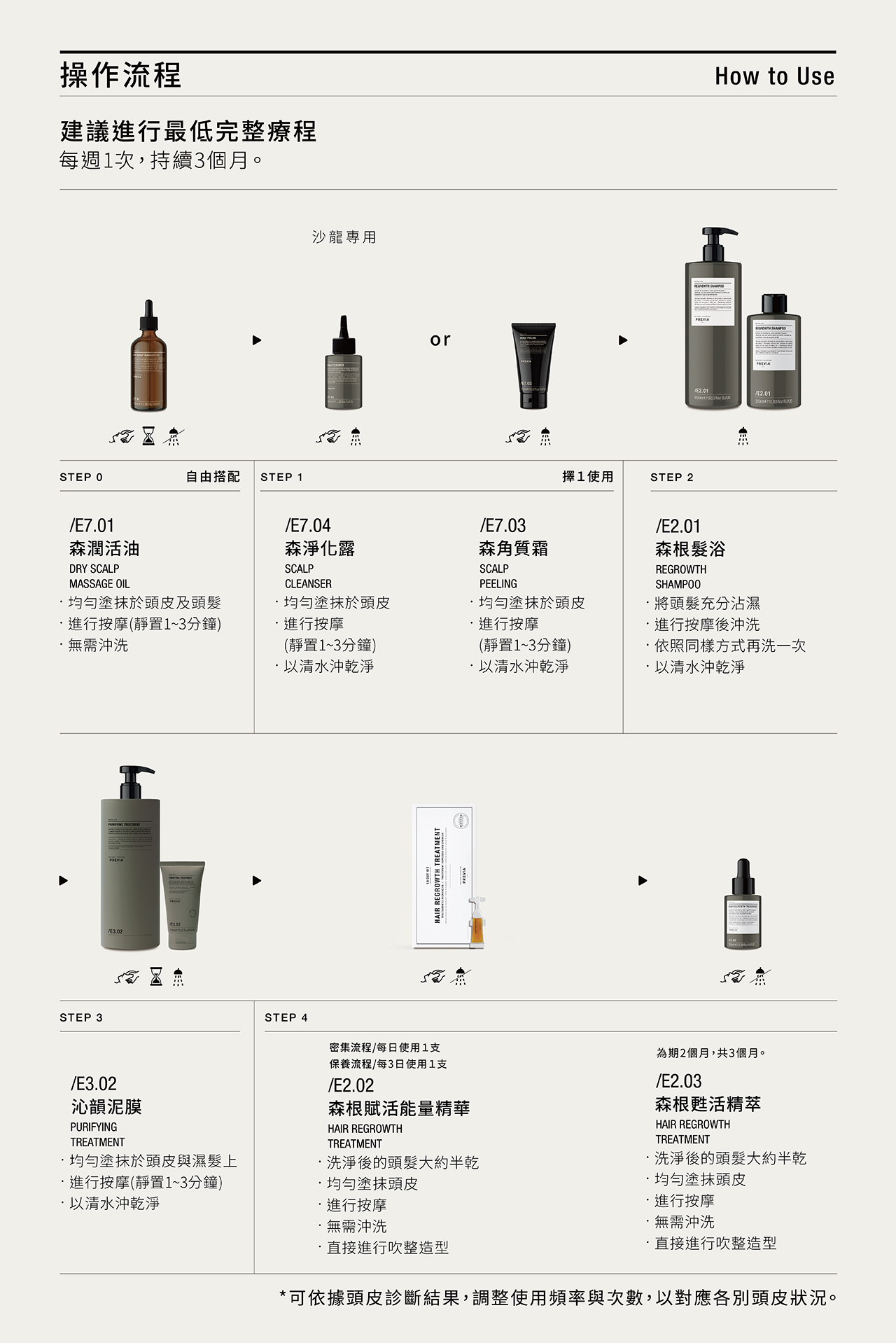 於濕髮上使用,適度按摩3-5分後沖淨,依個人需求可重複使用。